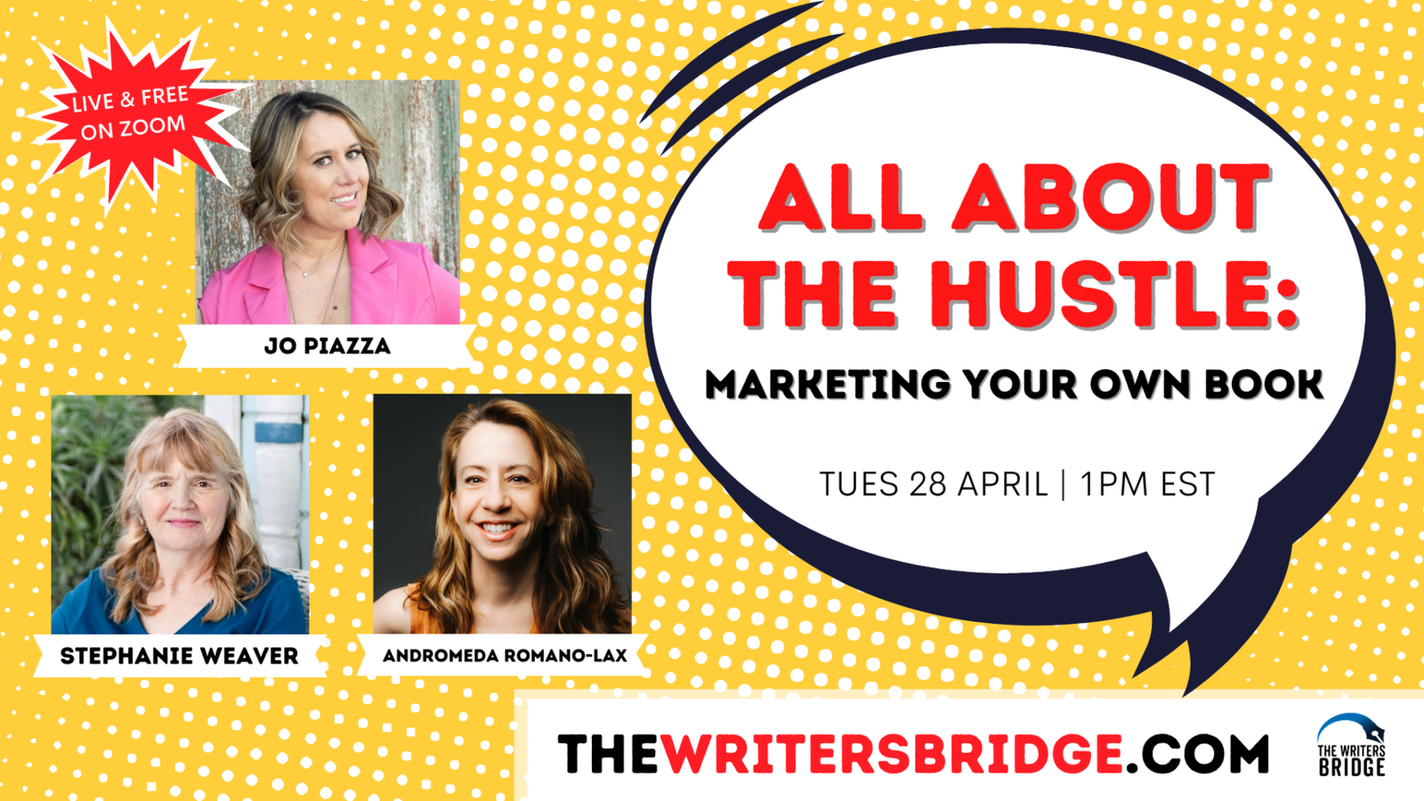 Andromeda Romano-Lax, Jo Piazza and Stephanie Weaver will tell us how their marketing plans have changed in 2026, the ways they’re bringing their words to the world, and the surprising tactics they never thought would work! Find out the best new book marketing tricks of the trade, and what you already know that’s still working.